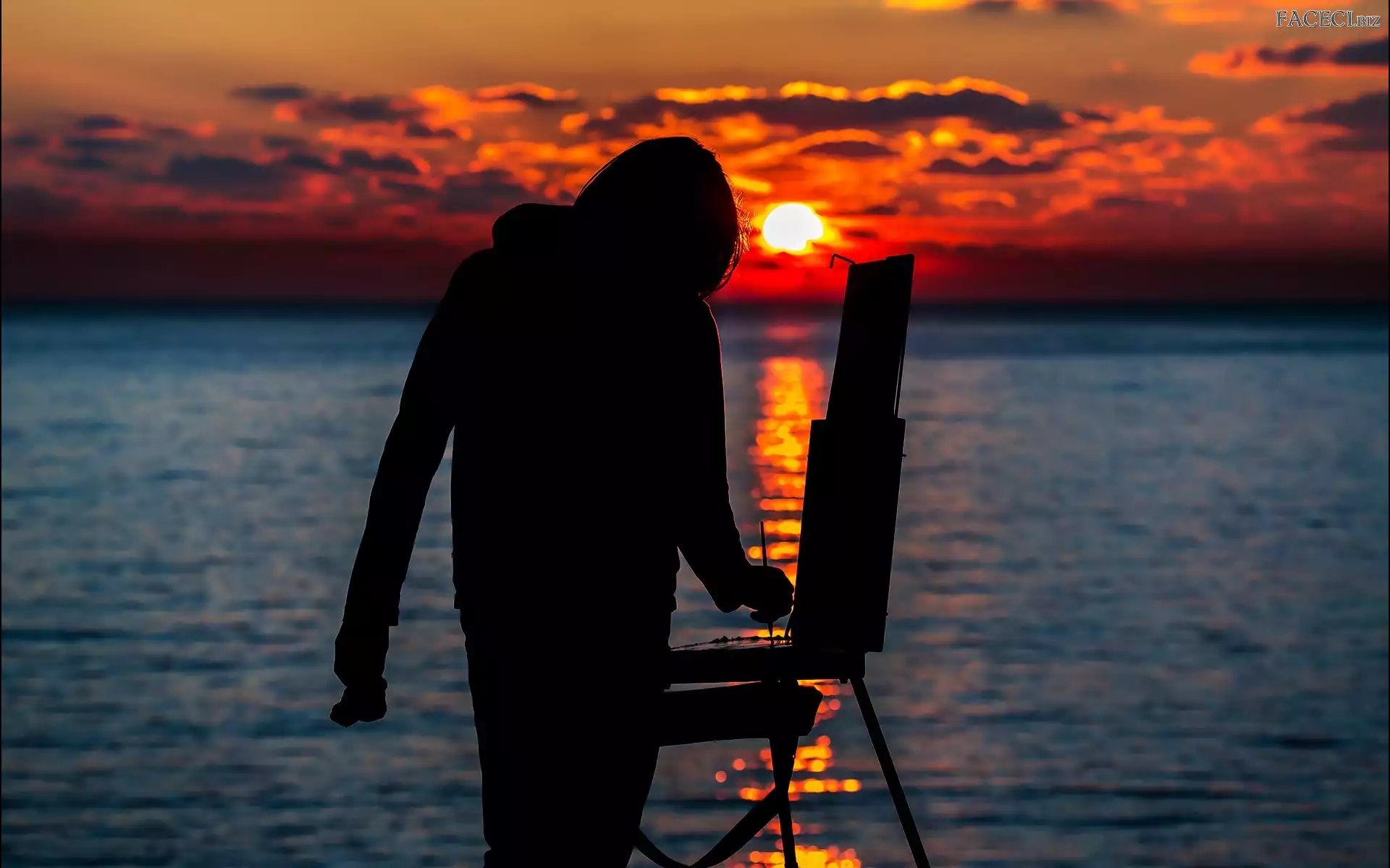 Zachód, Malarz, Morze, Słońca - faceci.biz
